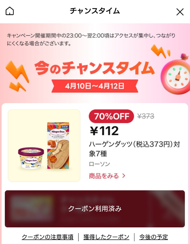 LINEギフトで、ハーゲンダッツを112円で購入しました。