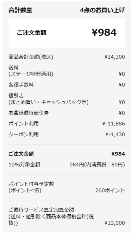 10%OFFクーポンと千趣会の株主優待を使って支払いました。