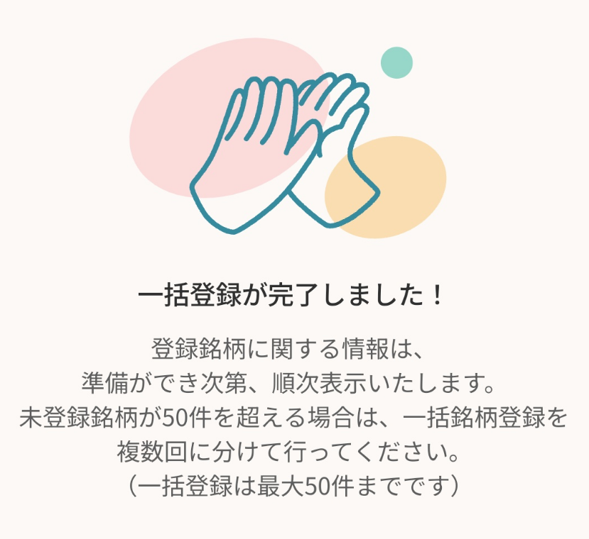 株主パスポートのアプリに、マイナンバーを登録すると、一括で保有銘柄が登録できます。