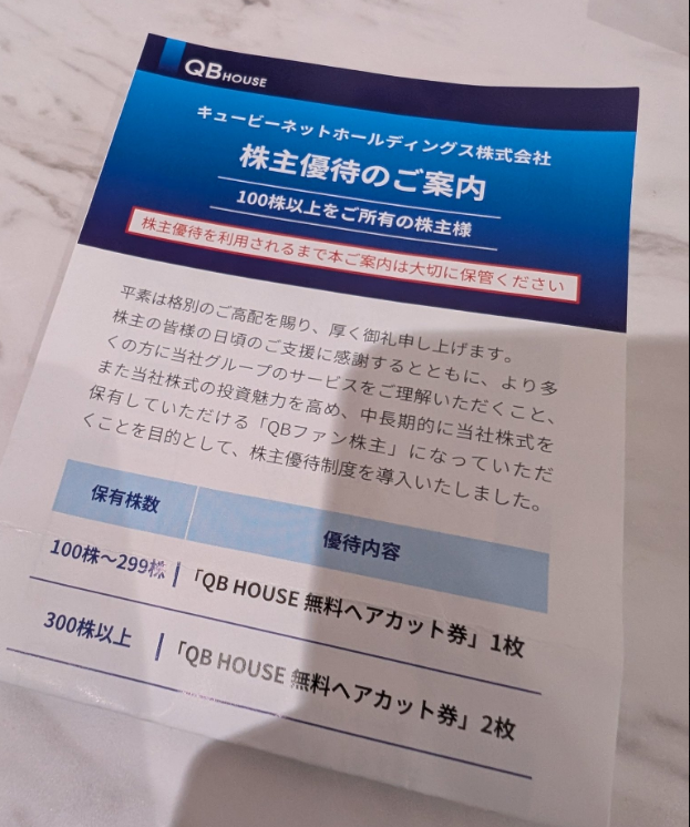 QBハウスで、株主優待を利用してヘアカットしてきました。
