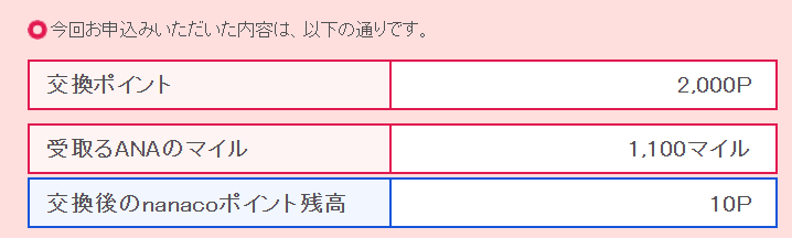 HPだと50%レートでの交換と表記されていましたが、なぜか55%で交換できました。