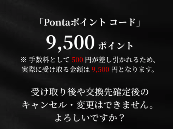 今回私は、手数料5%かかりますが、PONTAポイントに交換しました。