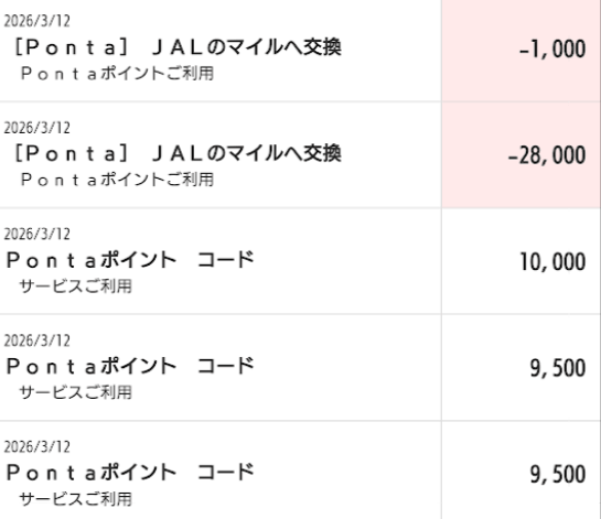 2026年3月時点で、ポンタポイントからJALマイルへの25%レートアップキャンペーンを利用したかったので…