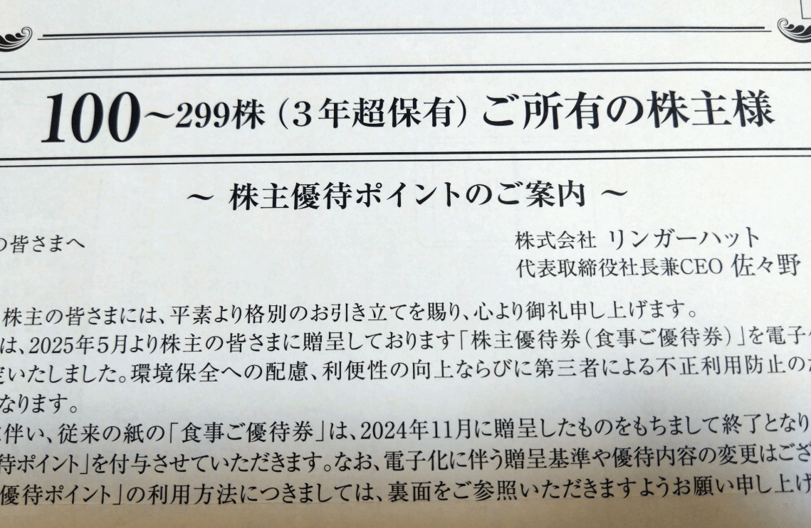 以上、リンガーハットの株主優待の紹介でした。