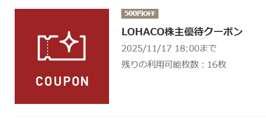 アスクルの株主優待は、LOHACOで使えるクーポンになります。